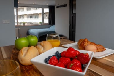 Entspannen Sie sich in unserem Studio der Boulevard C. Das Hotel liegt im dritten Stock und bietet Ihnen alle Annehmlichkeiten, um Ihren Aufenthalt angenehm zu machen. Dieses Studio ist für zwei Personen geeignet und verfügt über ein Zimmer. Das Studio verfügt über ein Doppelbett mit Sitzgelegenheit und auch eine voll ausgestattete, offene Küche mit einem Esstisch für zwei Personen, und natürlich ein modernes Bad mit Dusche.