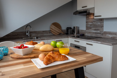 Die voll ausgestattete Küche macht es Ihnen leicht, eine köstliche Mahlzeit zuzubereiten. Die Küche verfügt über einen Kühlschrank, eine Mikrowelle, einen Wasserkocher und eine Nespresso-Kaffeemaschine.