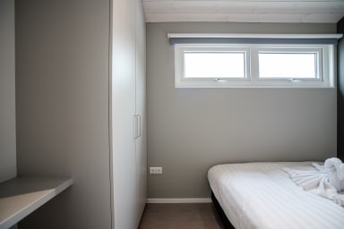 Die freistehenden Strandbungalows sind neu und verfügen über ein Wohnzimmer mit Sitz- und Essbereich. Die offene Küche verfügt über einen Geschirrspüler, einen Kühlschrank, Herd, Kombi-Mikrowelle und eine Espressomaschine. Das Schlafzimmer hat ein Doppelbett. Im Badezimmer gibt es eine Dusche, ein Waschbecken und ein WC. Die Bungalows sind außerdem voll isoliert und verfügen über eine Klimaanlagen / Heizung und im Badenzimmer Fußbodenheizung. So können Sie die kalten Tage trotzdem genießen.