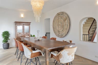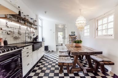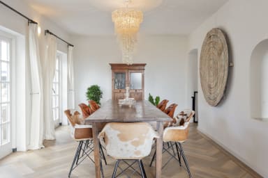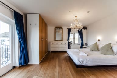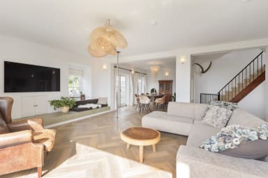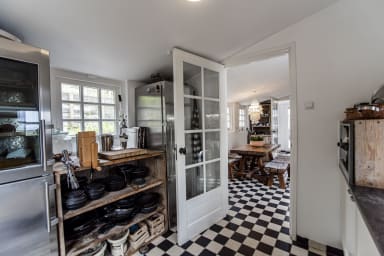 Während die Eigentümer abwesend sind, möchten sie ihr Haus mit Ihnen teilen. Da es ihr privates Familienhaus ist, stecken sie ihr Herzblut in das Haus. Das ist es, was Ihnen einen unvergesslich komfortablen Familienurlaub bescheren wird. Im luxuriös eingerichteten Wohnzimmer können Sie ein leckeres Familienessen genießen. Nach dem Abendessen können Sie eine Tasse Kaffee oder ein Glas Wein auf dem bequemen Sofa mit schöner Aussicht und Kamin genießen oder einen Sommerabend im großzügigen Garten verbringen. Die Küche ist mit modernen Geräten ausgestattet, wie z.B. einem konventionellen Aga-Ofen (4 Backöfen), der andere Ofen ist ein Hochdruck-Dampfbackofen, Müllzerkleinerer und ein Weinkühler. Im ganzen Haus gibt es ein zentrales Vakuumsystem. Die Auffahrt bietet Platz für acht Autos.