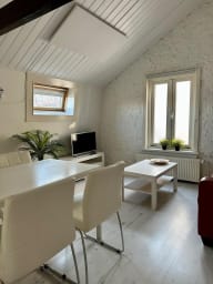 Die Unterkunft ist sehr komfortabel und erfüllt alle Ihre Bedürfnisse. Sie verfügt über zwei Schlafzimmer mit Kingsize-Betten, ein Wohnzimmer mit Sitzecke und Fernseher, eine Essecke und eine Küchenzeile mit 2-Platten-Elektroherd, Kühlschrank, Mikrowelle und Möglichkeit zur Kaffee- und Teezubereitung.