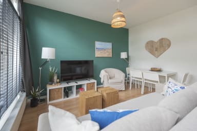 Diese schöne und helle neue moderne Wohnung befindet sich etwas außerhalb des Zentrums, in der Nähe der schönen Dünen und nicht weit vom Strand und dem Bahnhof. Es gibt 1 Schlafzimmer mit einem Doppelbett. Schlafsofa für 1 extra Person im Wohnzimmer. Die Küche ist voll ausgestattet mit allem, was Sie brauchen, um Frühstück, Mittag- und Abendessen zu machen. Ein gemütliches Wohnzimmer und ein Badezimmer mit Dusche und Toilette. Kostenlose Parkplätze rund um das Gebäude.