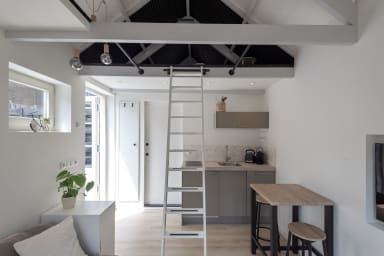 Willkommen in diesem charmanten, komplett renovierten Cottage in bester Lage in Zandvoort. Mit viel Liebe zum Detail eingerichtet und mit allen modernen Annehmlichkeiten ausgestattet - perfekt für ein romantisches Wochenende, Solo-Ausflug oder Zeit zu zweit. Das freistehende Cottage The Roost hat einen eigenen Eingang und liegt versteckt hinter einem schwarzen Tor, mitten im lebhaften Stadtzentrum und doch herrlich ruhig. Die Kombination aus skandinavischer Einfachheit mit einem Hauch von Boho-Luxus sorgt für sofortige Entspannung.