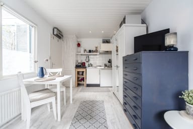Jopie's Cabin: This charming ground-floor studio is the perfect retreat for two, tucked away on a quiet street right in the heart of the vibrant city centre. Despite its central setting, it offers a peaceful and relaxing atmosphere — your own little oasis amidst the buzz. Thoughtfully designed, the studio comes with all the essentials you need for a truly comfortable stay.