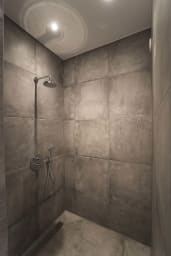 The apartment includes two comfortable bedrooms, offering plenty of space for a restful stay. The modern bathroom features a walk-in shower, and there is an separate toilet for convenience.