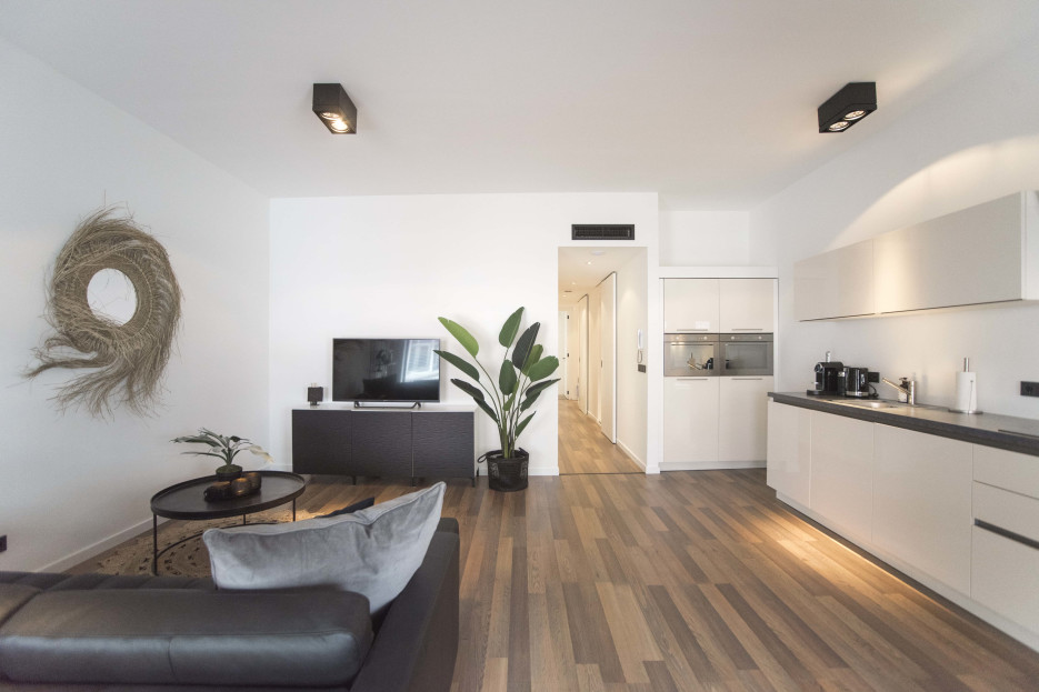 The apartment is very comfortable and fits all your needs. Upon entering, you'll find a long hallway leading to all the rooms. The generous living room is filled with natural light and features a fully equipped open kitchen, perfect for cooking and dining together.
