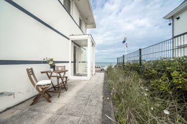 On the first floor of this charming building on the boulevard, you will find this cozy studio for 2 persons; Keller Beach, perfect for a relaxing stay by the coast. The location is ideal: within one minute, you can have your feet in the sand, surrounded by vibrant beach bars. And just a ten-minute walk away lies the charming village center.