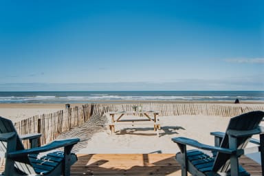• The beach house is on the beach with an unobstructed view of the sea.