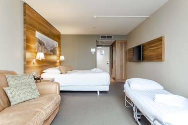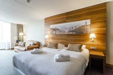 Superior beach suite for 3 people. Situated at the sixth floor from the NH Hotel in Zandvoort. The beach suite is located right at the beach, just outside the center of Zandvoort, and close to the dunes and the train station. It is a luxurious suite with a double bed with 2 single mattresses and a folding bed.