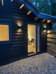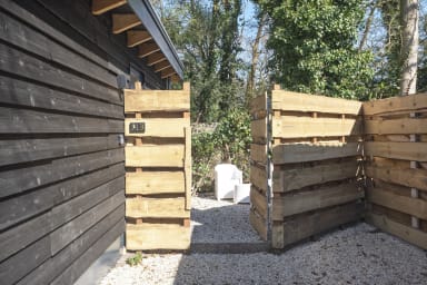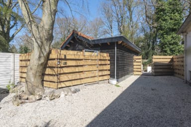 Charming and stylish guesthouse "De Linde", located in the peaceful, wooded area of Aerdenhout. Close to the beaches of Zandvoort and Bloemendaal, and just a short distance from Haarlem and Heemstede. The perfect base for a relaxing holiday in nature with all the comforts of home. Ideal for a romantic getaway or a remote work stay. Your accommodation offers a private entrance, a cozy private garden (15 m²), and complete privacy. Inside, you’ll find a bright living/sleeping area with a compact luxury open kitchen, fully equipped with everything you need. Enjoy the peace, comfort, and the beautiful green surroundings. Free private parking is available on site.
