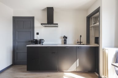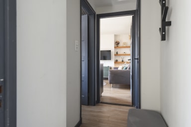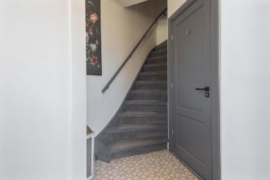 Het appartement bevindt zich op de eerste verdieping en is bereikbaar via een gedeelde hal en trap. Gasten gebruiken dezelfde hoofdingang als de bewoners. Vanuit de hal leidt de trap direct naar uw privé-appartement.