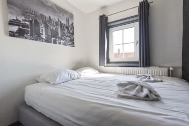 - Slaapkamer met een tweepersoonsbed (1.60 x 2.00 m)