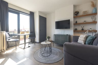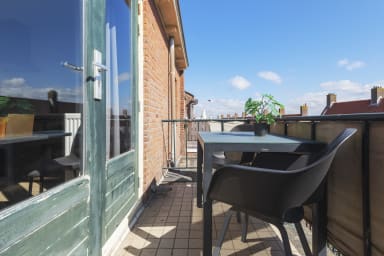 Joy at the Beach Seashell: Duurzaam en stijlvol appartement met balkon, vlakbij het strand en het centrum