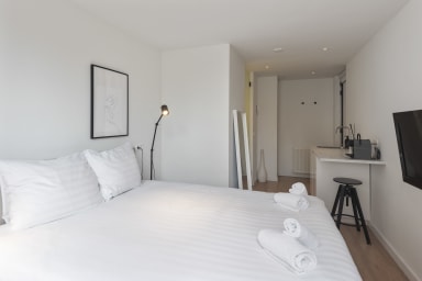 De studio is zeer comfortabel en voldoet aan al uw wensen. Het beschikt over een tweepersoonsbed en een volledig ingerichte kitchenette. Luxe badkamer met inloopdouche en toilet.