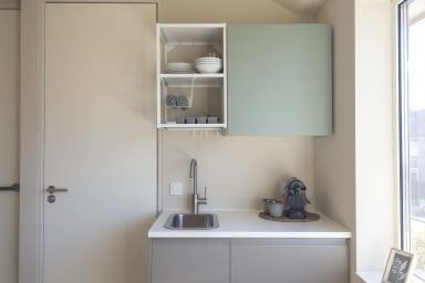 Bij binnenkomst via de hoofdingang gaat u rechts de trap op. Bovenaan de trap bevindt de studio zich aan de linkerkant. De studio is exclusief voor jou tijdens je verblijf.