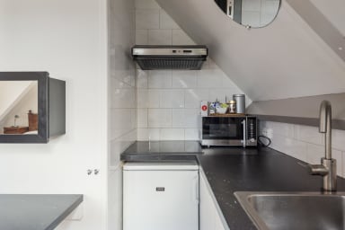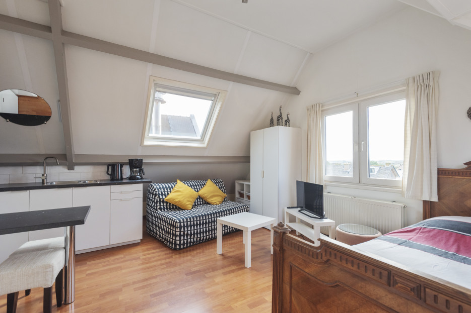 Studio 4 ligt op de tweede verdieping en is alleen bereikbaar via een trap. De eigen badkamer heeft een douche en een toilet.