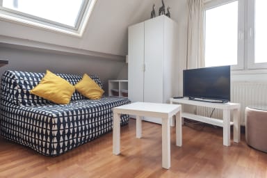 Studio 4 bevindt zich op de tweede verdieping van een historisch huis waar Arnold Schönberg in 1920-1921 woonde. De studio heeft een zithoek, flatscreen-tv en een kitchenette met een fornuis, koelkast, magnetron en keukengerei. Eigen badkamer en toilet. Beddengoed en handdoeken zijn aanwezig.